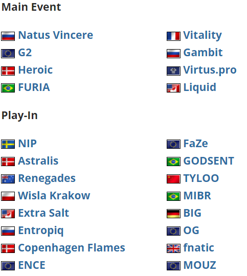 参与战队和选手